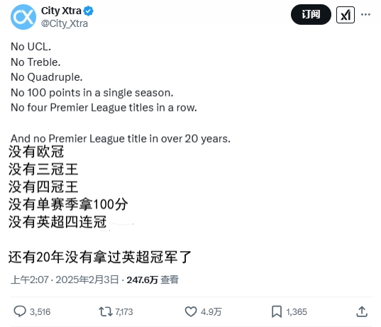 曼城球迷在曼城1-4过期时发的一条推文成为热帖体育集锦