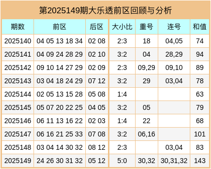 大乐透2025149期开奖,本期奖号:前区24、26、30、31、32,后区05、12。